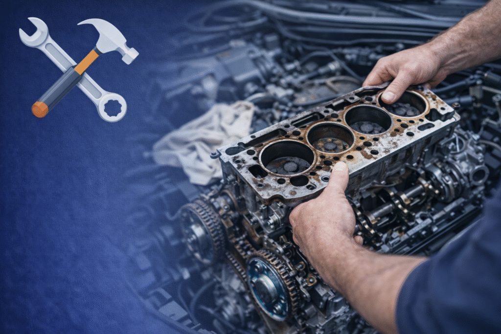 Diagnóstico y reparación de fallas internas del motor. Incluye cambio de empaques, reparación de culata y ajustes generales para recuperar potencia y funcionamiento óptimo.